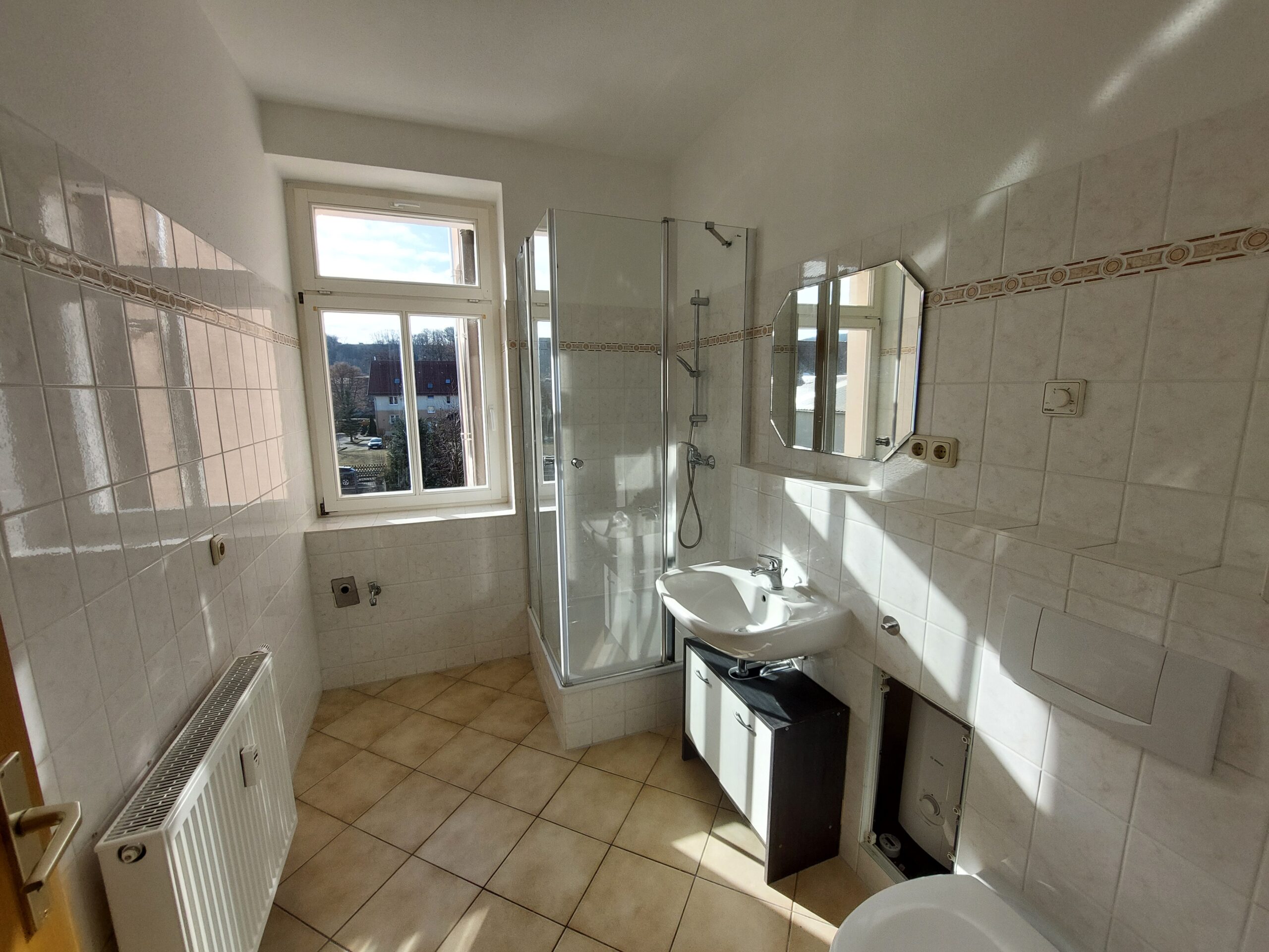 Die Wohnung 10340 befindet sich im 1. Obergeschoss eines kleinen Mehrfamilienhauses nahe dem Stadtzentrum von Rosswein. Sie verfügt über ein Wohnzimmer, ein Schlafzimmer, eine bereits mit einer Einbauküche ausgestatte Küche, ein Tageslichtbad mit Dusche, einen Flur und ein Kellerabteil. Zur gemeinschaftlichen Nutzung steht ein kleiner Garten mit Wäscheplatz bereit.